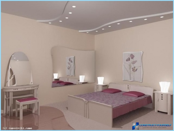 تصميم سقوف الحوائط الجافة لغرفة النوم مع صورة
