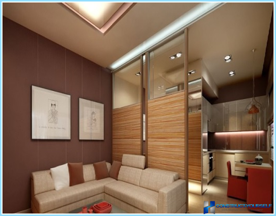 أقسام زخرفية بين غرفة المعيشة والمطبخ