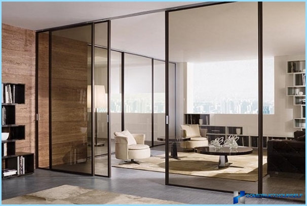أقسام وأبواب منزلقة بين غرفة المعيشة والمطبخ