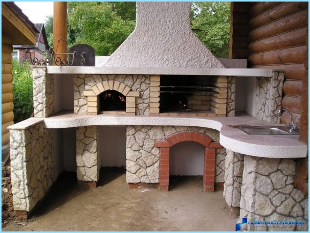 شرفة أرضية في المنزل الريفي مع شواء متصل بالمنزل
