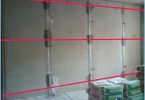 الخطوة الأولى في تطبيق الجص على أي جدران هي قياسها ، للتحقق من إزالة البناء أو انتهاكات الهندسة. هذا ضروري ، أولاً وقبل كل شيء ، من أجل وضع المنارات أو المعالم بشكل مناسب ، حيث يتم محاذاة طبقة الجص ، على الأقل للجدران الخرسانية ، على الأقل لجدران من الطوب. تحت نقاط وضع المنارات ، نختار خطوطًا رأسية على بعد 10-15 سم بعيدًا عن الزوايا ، على نفس المسافة من حافة الجدار ، ونضع العديد من منارات التشكيل الجانبي على مستوى الجدار. يجب أن تكون المسافة بين الملفات الشخصية 20-25 سم أقل من طول القاعدة. تم اختيار الحجم الأخير بالفعل بناءً على حجم الغرفة.